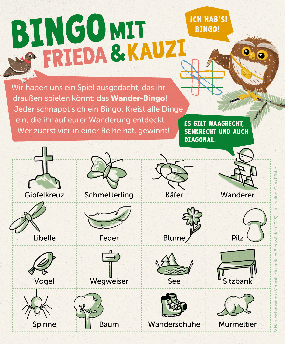 Druck dir das Wanderbingo aus, schnapp deine Freunde und ab in die Natur! Hier geht’s zum Download: