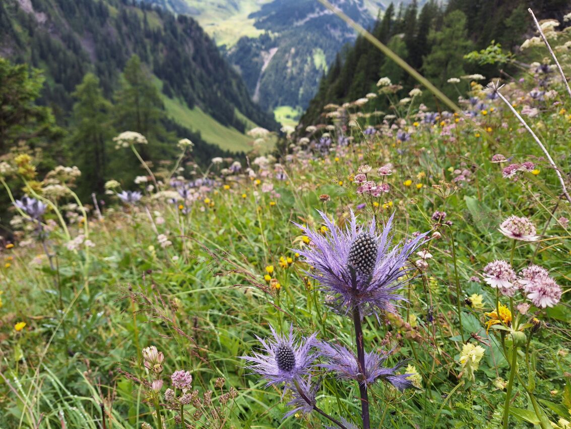 Wo einst Vorarlberg und Liechtenstein um die Landesgrenzen feilschten, befindet sich heute ein Europaschutzgebiet für eine sehr seltene Pflanze – den Alpen-Mannstreu (Eryngium alpinum). In Österreich beschränkt sich das Vorkommen dieser Art auf wenige Standorte in Vorarlberg und Kärnten. Der auffällig blaublühende Doldenblütler war früher ob seiner Attraktivität ein begehrtes Sammelobjekt, ist jedoch mittlerweile vollkommen geschützt. Der Einfluss von Weidevieh und Wildtieren auf die lokalen Vorkommen machte in den letzten zehn Jahren Maßnahmen zum Erhalt der Art notwendig.