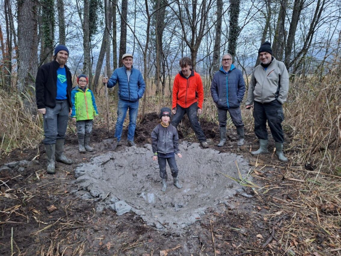 Ein weiterer Schwerpunkt lag auf Gehölzmaßnahmen zur Offenhaltung wertvoller Lebensräume. Im Europaschutzgebiet „Frastanzer Ried“ wurden im März Gehölze zurückgeschnitten, um möglichst besonnte Amphibienlaichgewässer zu erhalten. Im November folgten Gehölzpflegemaßnahmen an Gehölzgruppen zur Offenhaltung der Feucht- und Streuwiesen. Ebenfalls im November wurden neue Amphibienlaichgewässer angelegt, indem Mulden gegraben und mit Lehm ausgekleidet wurden. Diese temporär wasserführenden Tümpel bieten insbesondere der seltenen Gelbbauchunke wertvolle Fortpflanzungshabitate. Weitere gezielte Gehölzpflegemaßnahmen dienten der Offenhaltung von Wiesenflächen zur Förderung wiesenbrütender Vogelarten. Im Europaschutzgebiet „Birken“ in Wolfurt wurden Gehölze zurückgenommen, um geeignete Brutbedingungen für Arten wie Großer Brachvogel und Braunkehlchen zu schaffen bzw. zu erhalten. In den Hochlagen standen ebenso gezielte Artenschutzmaßnahmen im Mittelpunkt. Im Bergwald des Verwall wurden durch Schlagräumungen und das Pflanzen von Laubgehölzen die Habitate von Auer- und Haselhuhn aufgewertet. Auch das Offenhalten strukturreicher Alpweiden bleibt ein zentraler Bestandteil der Vielfaltertage, insbesondere im Europaschutzgebiet Verwall. Mit Schwendarbeiten auf der Alpe Gues im Silbertal sowie auf der Thüringer Alpe im Klostertal konnten erneut zwei Balzplatzbereiche des Birkhuhns erweitert werden.